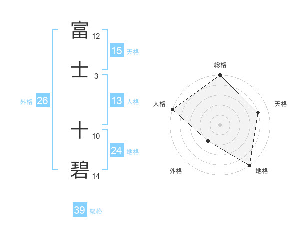 富士 十碧さんの総格は39画の5点!