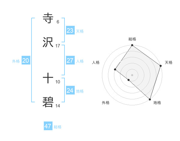 寺沢 十碧さんの天格は23画の5点!