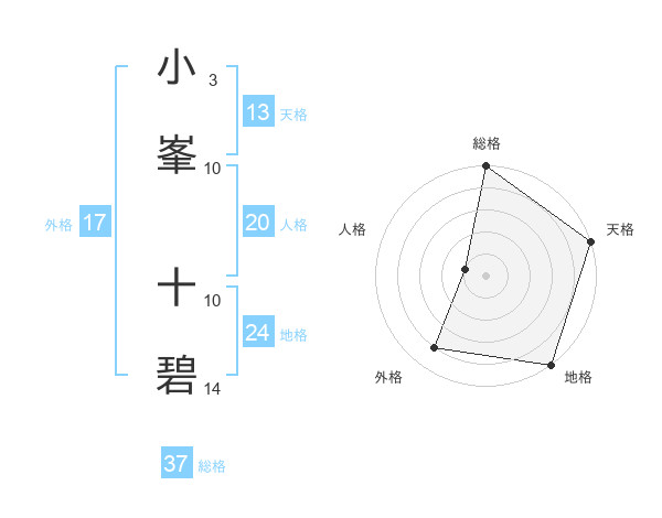 小峯 十碧さんを姓名の画数から五運を鑑定