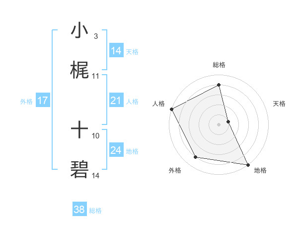 小梶 十碧さんを姓名の画数から五運を鑑定