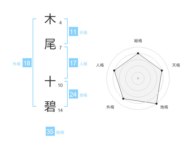 木尾 十碧さんの総格は35画の4点!