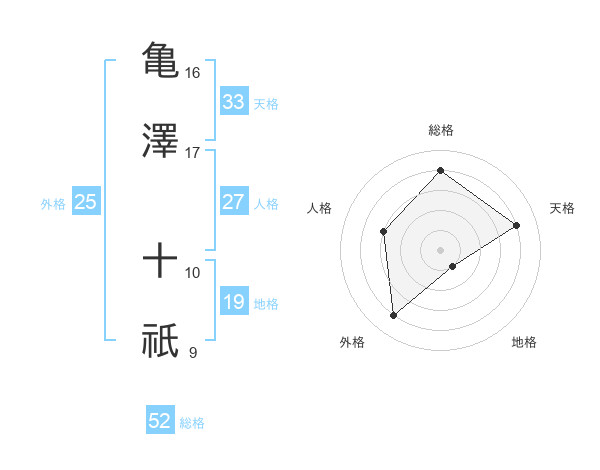 亀澤 十祇さんを姓名の画数から五運を鑑定