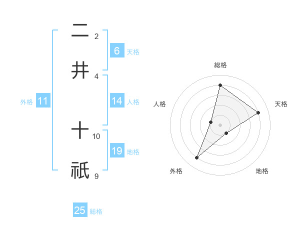 二井 十祇さんの総格は25画の4点!