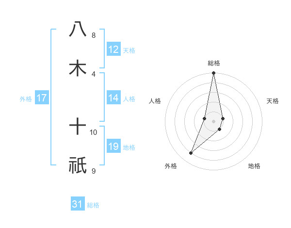 八木 十祇さんの総格は31画の5点!