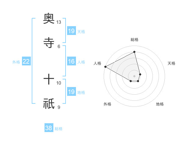 奥寺 十祇さんの総格は38画の4点!