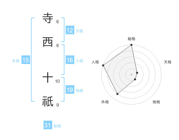 寺西 十祇さんの総格は31画の5点!