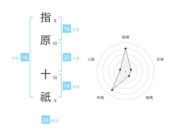 指原 十祇さんの総格は38画の4点!