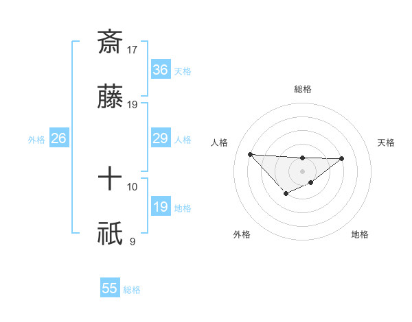 斎藤 十祇さんを姓名の画数から五運を鑑定