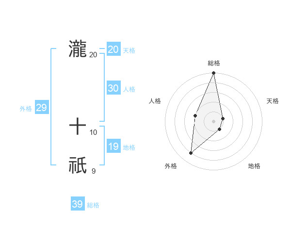 瀧 十祇さんを姓名の画数から五運を鑑定