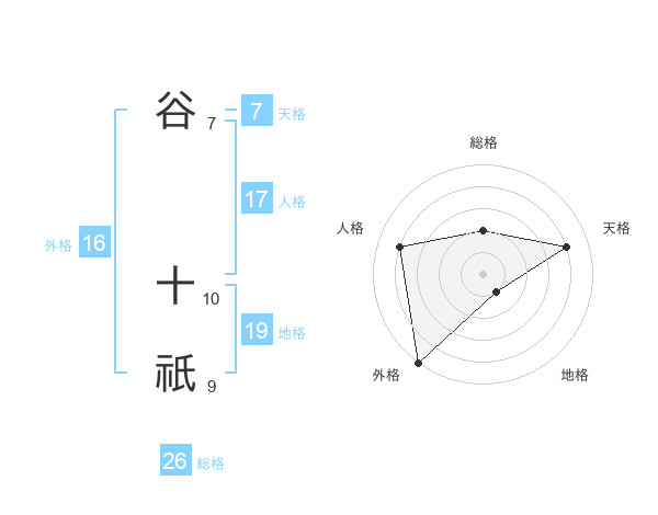 谷 十祇さんの総格は26画の2点!
