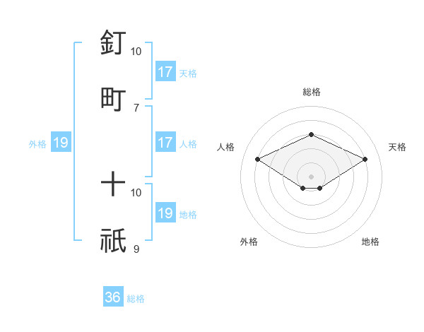 釘町 十祇さんを姓名の画数から五運を鑑定
