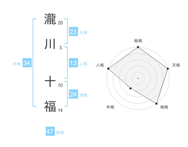 瀧川 十福さんを姓名の画数から五運を鑑定
