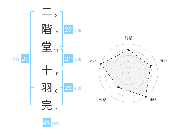 二階堂 十羽完さんを姓名の画数から五運を鑑定