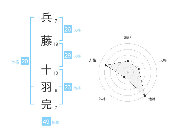 兵藤 十羽完さんの総格は49画の2点!