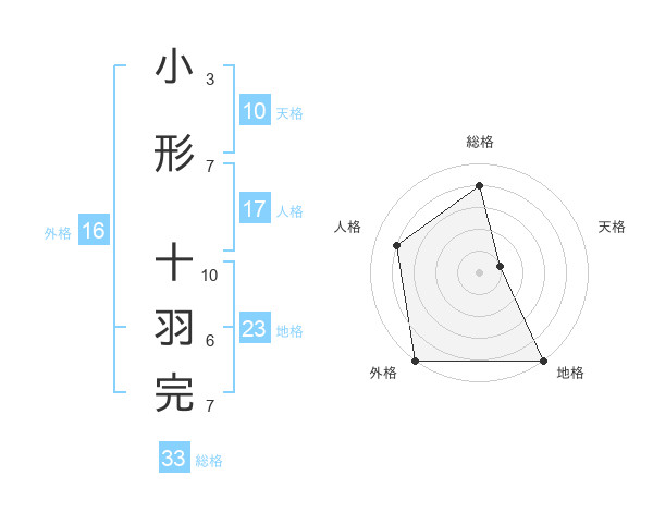 小形 十羽完さんを姓名の画数から五運を鑑定