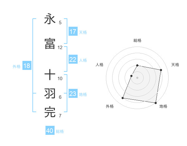 永富 十羽完さんを姓名の画数から五運を鑑定