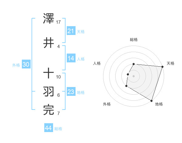 澤井 十羽完さんを姓名の画数から五運を鑑定