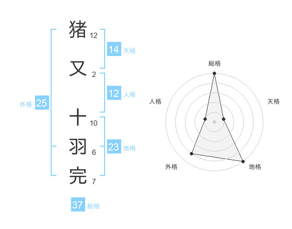 猪又 十羽完さんを姓名の画数から五運を鑑定