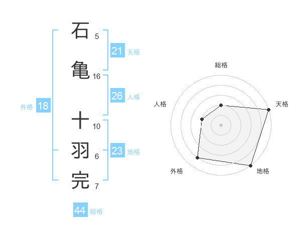 石亀 十羽完さんを姓名の画数から五運を鑑定