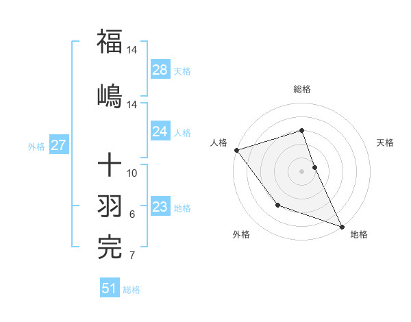 福嶋 十羽完さんを姓名の画数から五運を鑑定