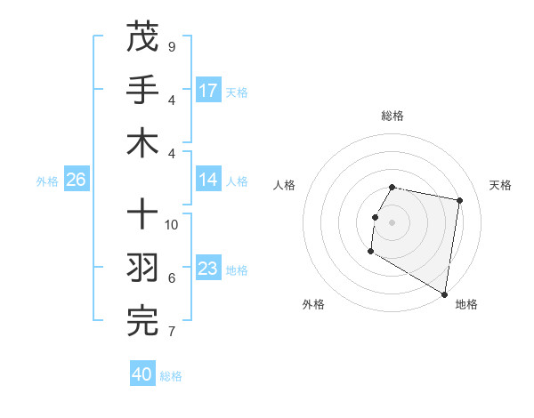 茂手木 十羽完さんの総格は40画の2点