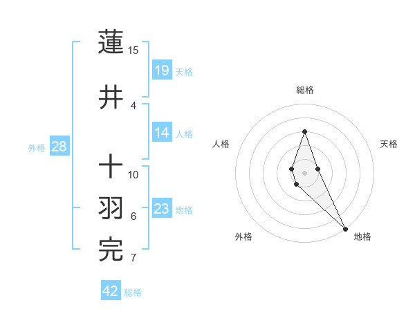 蓮井 十羽完さんを姓名の画数から五運を鑑定