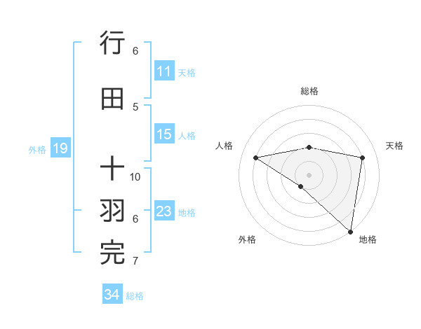 行田 十羽完さんを姓名の画数から五運を鑑定