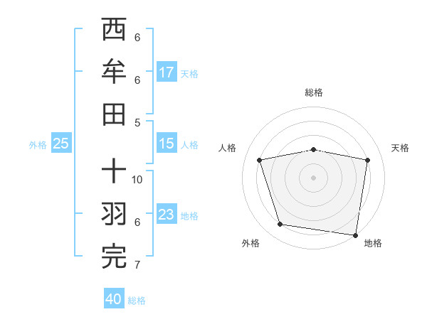 西牟田 十羽完さんを姓名の画数から五運を鑑定