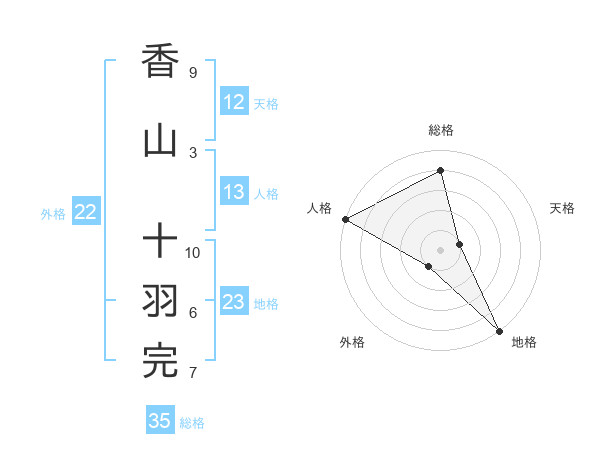 香山 十羽完さんを姓名の画数から五運を鑑定