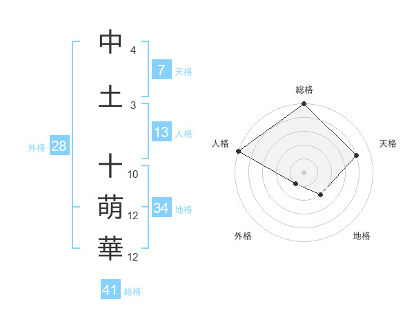中土 十萌華さんを姓名の画数から五運を鑑定