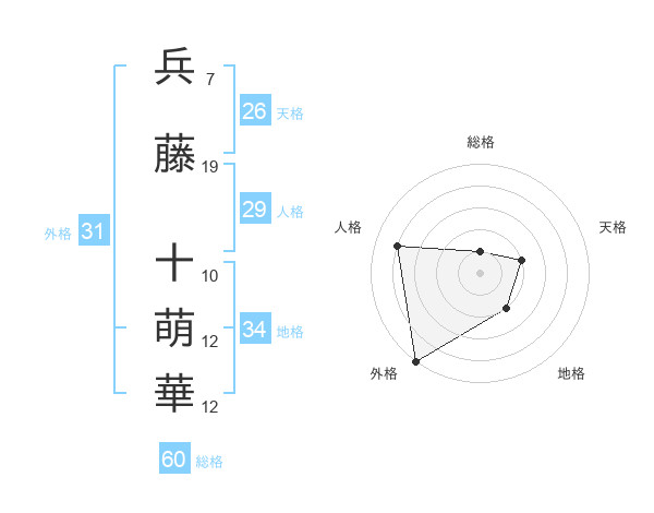 兵藤 十萌華さんの外格は31画の5点!