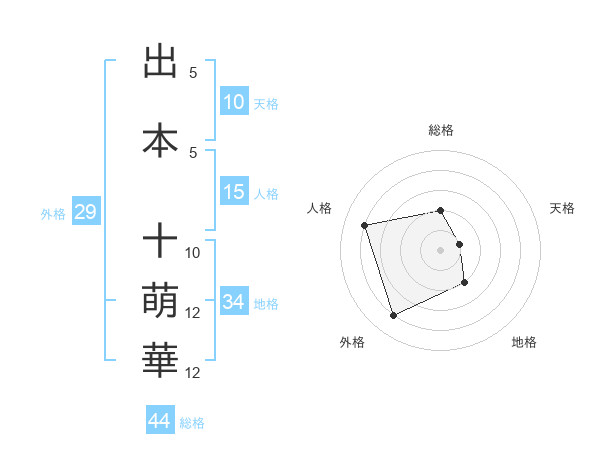 出本 十萌華さんの外格は29画の4点!