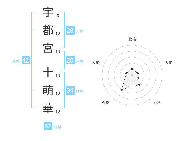 宇都宮 十萌華さんを姓名の画数から五運を鑑定