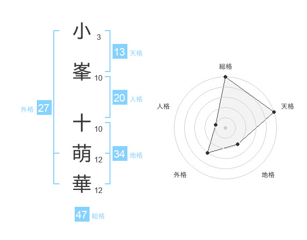 小峯 十萌華さんを姓名の画数から五運を鑑定