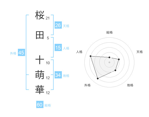 桜田 十萌華さんの総格は60画の1点!