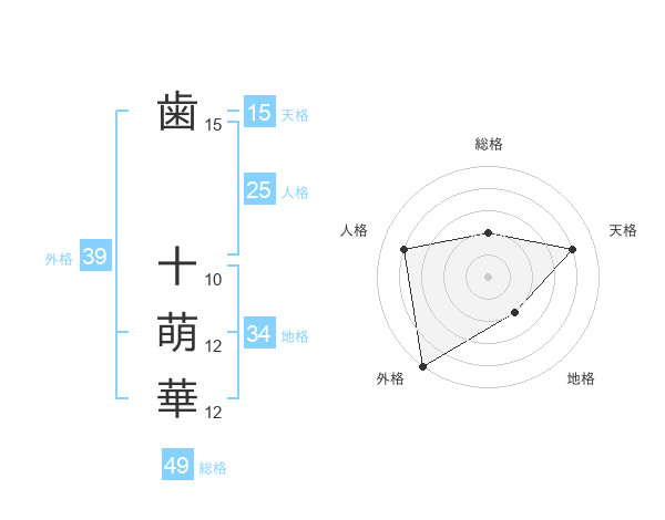 歯 十萌華さんの総格は49画の2点!