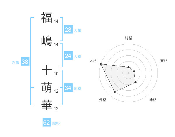 福嶋 十萌華さんを姓名の画数から五運を鑑定
