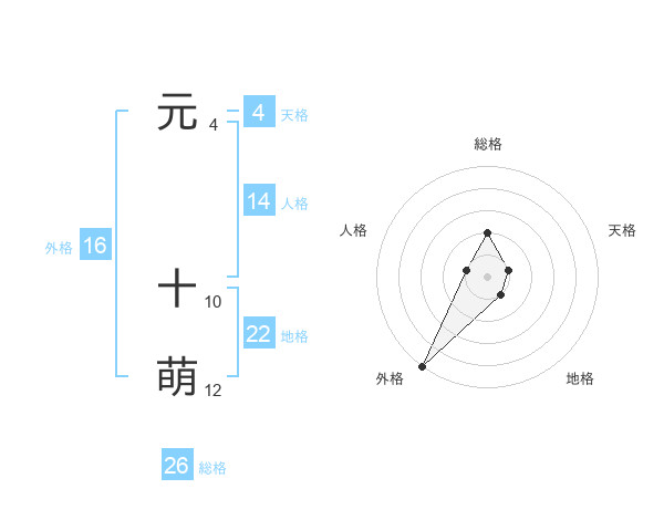 元 十萌さんの総格は26画の2点!