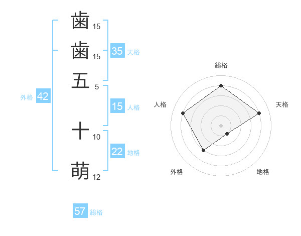 歯歯五 十萌さんを姓名の画数から五運を鑑定