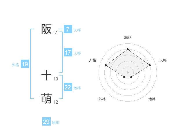 阪 十萌さんの総格は29画の4点!