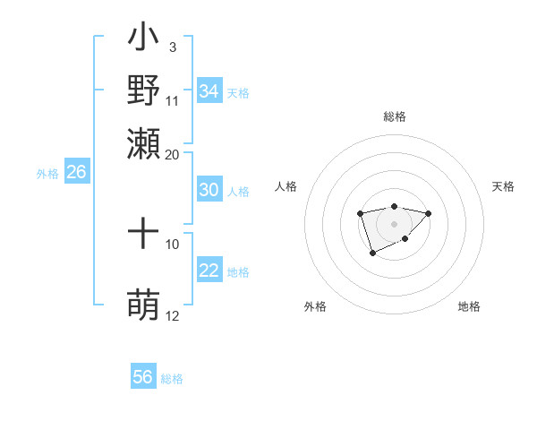 小野瀬 十萌さんの総格は56画の1点!