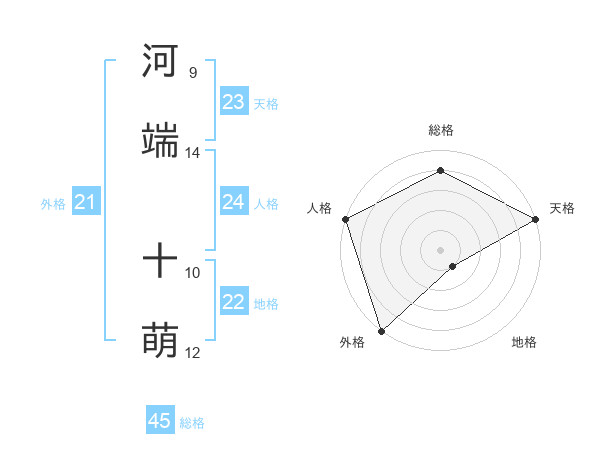 河端 十萌さんの総格は45画の4点!