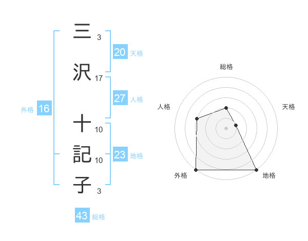 三沢 十記子さんを姓名の画数から五運を鑑定