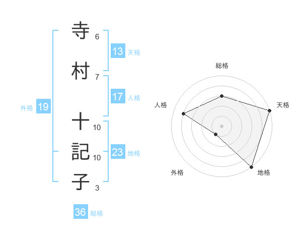 寺村 十記子さんの天格は13画の5点!