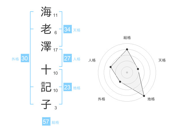 海老澤 十記子さんを姓名の画数から五運を鑑定