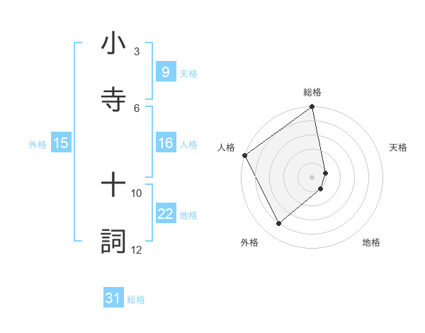小寺 十詞さんの外格は15画の4点!