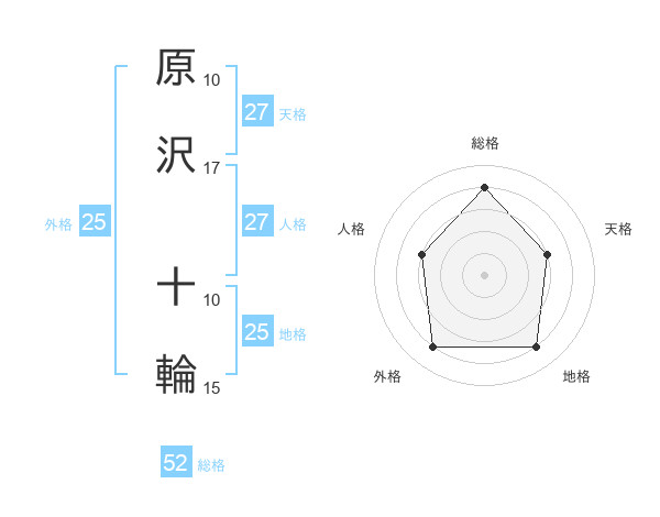 原沢 十輪さんを姓名の画数から五運を鑑定