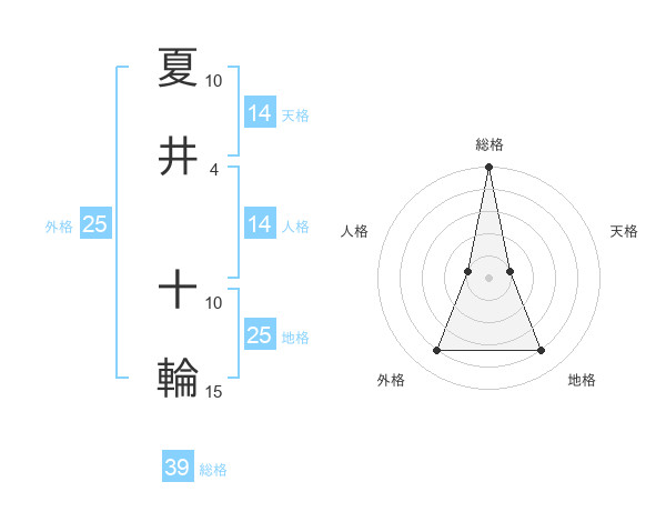 夏井 十輪さんを姓名の画数から五運を鑑定