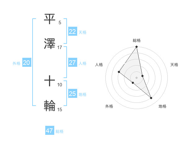 平澤 十輪さんの総格は47画の5点