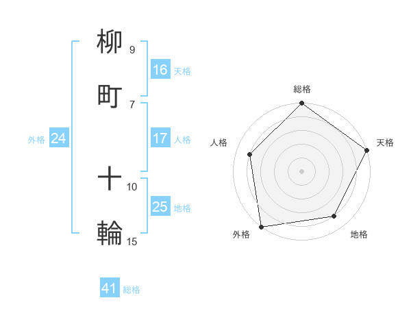 柳町 十輪さんを姓名の画数から五運を鑑定